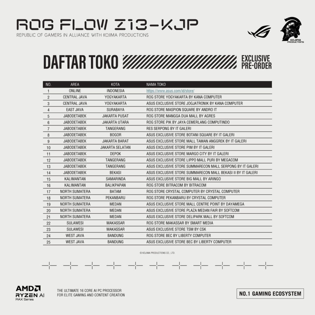 • Daftar 24 Toko Pre-Order ROG Flow Z13-KJP: