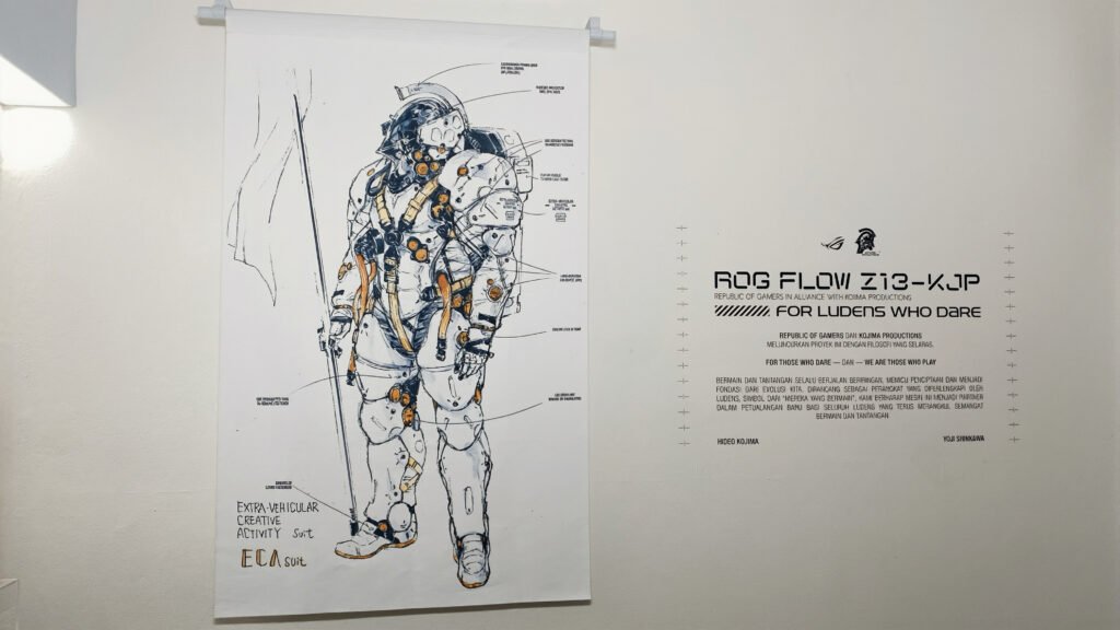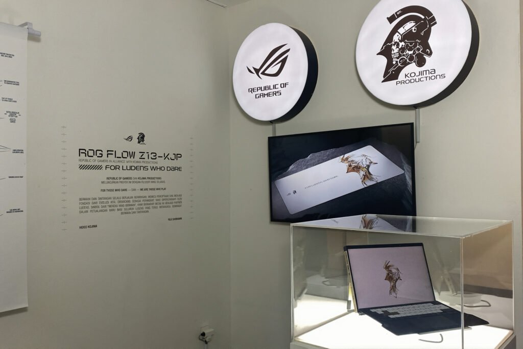 Yup, aku baru datang ke ROG Flow Z13-KJP Product Showcase yang diadakan di Dia.Lo.Gue Art Space, Kemang – Jakarta Selatan. Di sini, teknologi nggak tampil bising, tapi tampil estetik dan futuristik. Suasana showcase-nya bener-bener dapet banget vibe ‘Tech x Art’-nya, berkat kolaborasi ASUS ROG x Kojima Productions (KJP), developer game besar terkemuka. It’s moody and it’s definitely high-tech. Siapa sangka tablet gaming paling powerful di dunia bisa kelihatan se-artistik ini? Bener-bener visually satisfying.