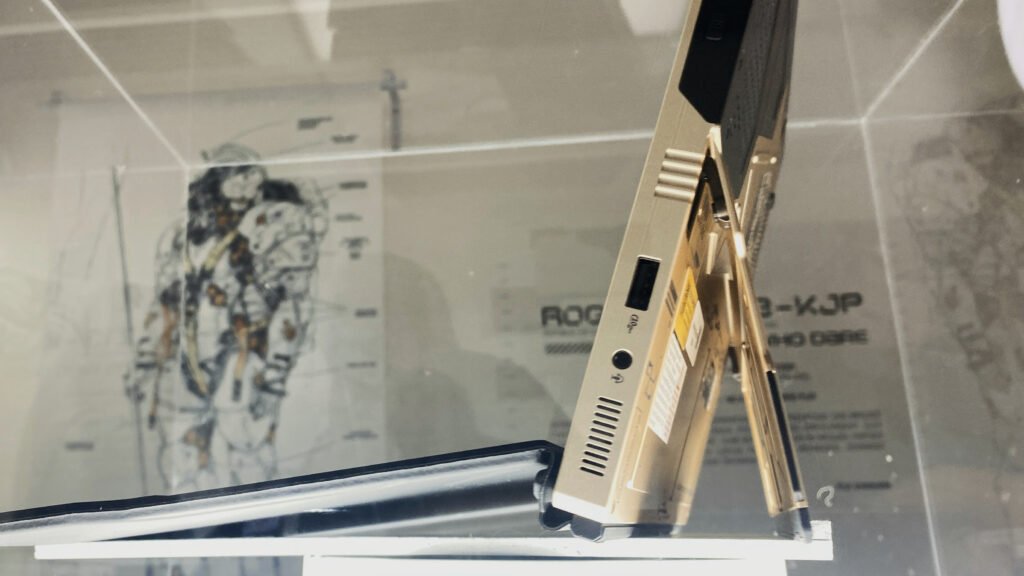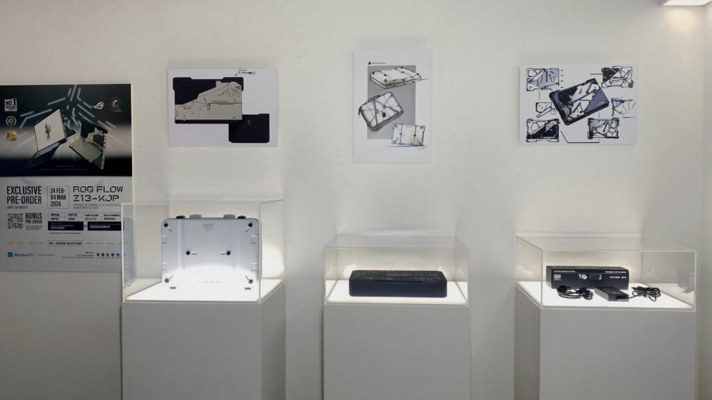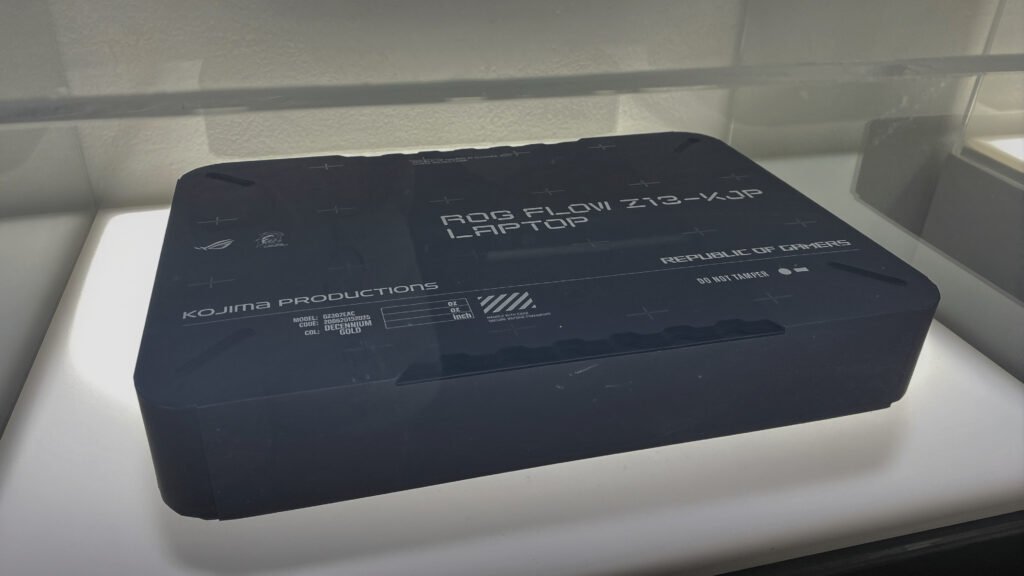 Nah, bintang utamanya tentu saja adalah ROG Flow Z13-KJP. Pas sampai di area display, unit ini diletakkan dengan sangat eksklusif di balik kaca. Produk ini super limited, unitnya memang hanya untuk showcase, jadi kita belum bisa pegang atau hands-on langsung.