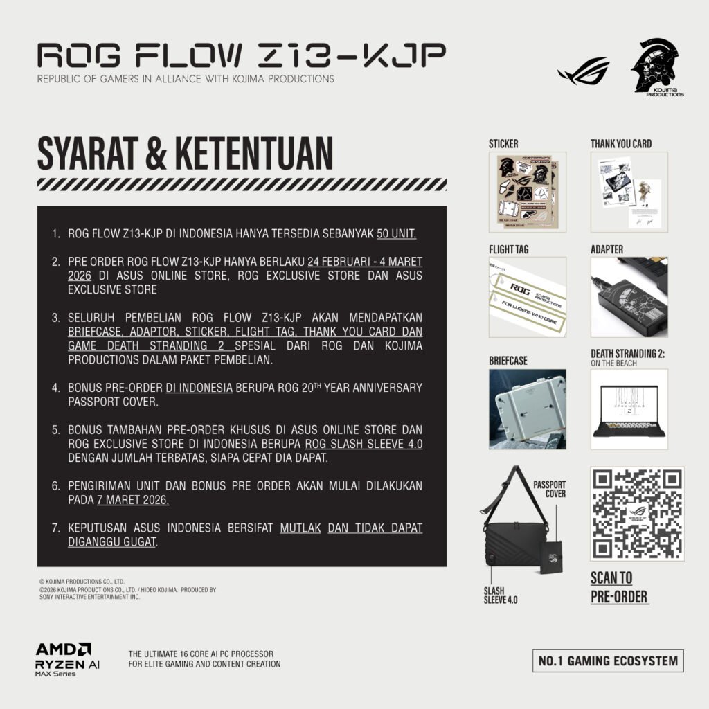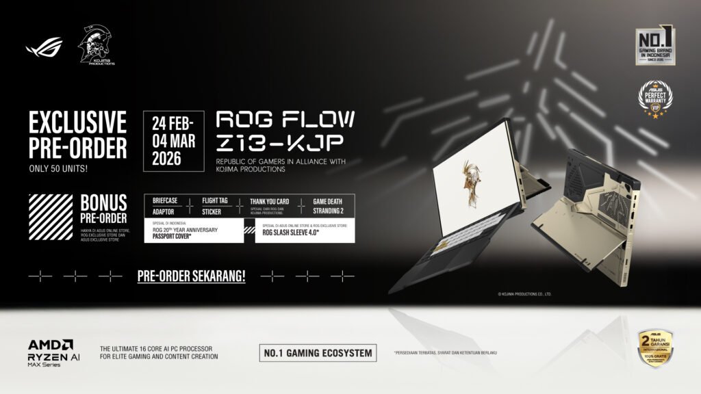 Tapi ingat, slotnya cuma 50 unit. Jadi buat para ROGers, professional gamers, maniak spek atau kolektor item langka, aku saranin jangan terlalu lama mikir. Langsung amankan slot kamu melalui Pre-Order sekarang juga sebelum barang ini hilang dari peredaran dan cuma jadi legenda. sesi Pre-Order resmi dibuka mulai 24 Februari 2026 pukul 21.00 WIB dan akan berlangsung hingga 4 Maret 2026.